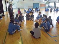 次に、8つのグループに分かれて、「よさこいソーラン」の踊りを中学生に教えてもらいました。中学生がとても良く面倒を見てくて、6年生たちは中学生との交流にすっかり馴染んだようでした。来週、また教えてもらい、最後の交流学習の時に発表する予定です。