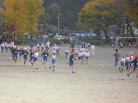 2校時が終わると、全校生が校庭に出てきて、学年毎に分かれて集合し、準備運動をしてから5分間走を行っています。みんな元気いっぱいで、足取りも軽く走っています。職員も一緒に走って、持久走記録会を盛り上げると共に、体力増進も目指しています。