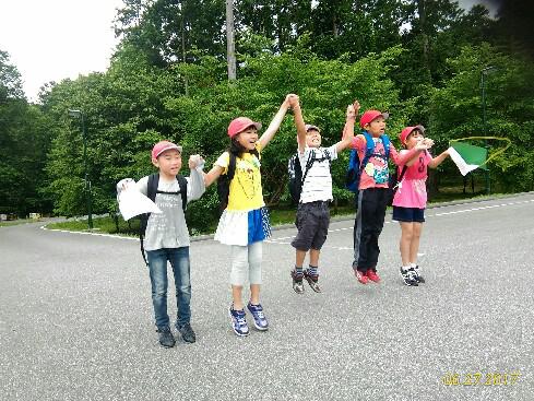 約2時間のラリーをおえ、見事ゴール!最後は、全員で手をつないでのゴールです。お疲れさま。優勝チームはどこでしょうか。