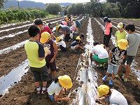 本日の5時間目に、1・6年生が大根の種まきをしました。1年生にとっては、初めての大根の種まきです。マルチの穴が開いている全ての所に種が蒔けるように、6年生が様々な工夫をしながら作業に取り組みました。出席番号順にペアを組み、6年生が1年生を優しくサポートしてくれました。