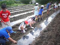 本日、5時間目に、学校農園にて、大根の種まきを行いました。台風が過ぎ去り、青空が覗くさわやかな天気の中、5年生は2年生の種まきの面倒を見てくれました。2、5年生は、3畝分の種まきをしました。心配された、土の状態もそれほど悪条件ではなく、みんな一生懸命に作業していました。作業後の子ども達の汚れた手が、彼らの頑張りを表しているのでしょう。