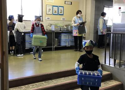 11月2日(火)、調理場より3名の職員の方が本校を訪問され、配膳室の衛生管理、配膳時や給食時の様子などを参観されました。