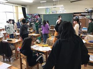 4年生は4校時、チャールズ先生との外国語活動でした。ジョリー・フォニックスの「s」から始まって最後まで確認した後、「oa」「u」「l」「f」「b」「ai」「j」までを書きました。「toast」には「oa」が入っているので、分かりやすく発音することができていたようです。