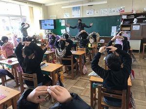 2年生は音楽の時間でした。いろいろな楽器の使い方を学んでいました。大太鼓、木琴、鉄琴、トライアングル、すずなどです。DVDを見ながら確認していました。