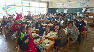卒業式を目前に控え、今日の給食は校長先生をお招きして、教室で一緒に会食しました。先日は校長室で食べましたが、今度は教室に迎えるということで、子どもたちも座席を工夫して楽しい時間を過ごしました。