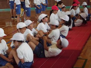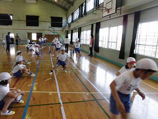 2日目は、晴天に恵まれ、校庭と体育館でそれぞれの場所に分かれ実施しました。ペア学年をさらに小グループに分け、各実施場所に移動します。元気よくあいさつをし、担当の先生から説明を受けた後、いよいよスタートです。どの子も「全力、挑戦、ありがとう」の気持ちで取り組みました。