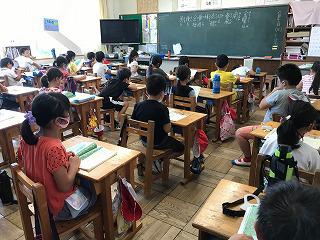 5校時の2年生は、国語の時間でした。「サリーのすてきなぼうし」の新出漢字を確認した後、1頁ずつ代表の子が音読をしていました。自分から進んで音読した子どもたちで、いずれも大変上手に音読ができていました。その後、グループの子どもたちに各自が考えた帽子をお花していました。30°を超える暑い中での教室で頑張る2年生でした。