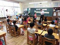 17日(水)にALTマシュー先生の外国語の授業がありました。1年生にとっては,2回目の外国語活動でしたが,今回は,「果物の名前や色」の単語を教えていただきました。また,「I LIKE○○.」と言う表現を使って,インタビュー形式のゲームを行い,楽しく活動することができました。