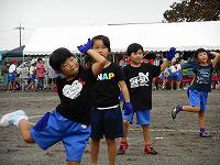 曇天に穴を空けようと紅白の球を投げた「大空にアタック」(1,2年)