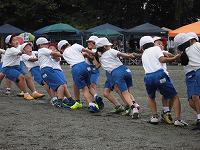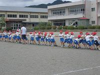 まずは、1-3年生の綱引きです!3年生の代表の子達が、1・2年生の先頭で引っ張って入場しました。みんな、一生懸命声を出して必死に綱を引いていました。