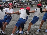 最後の力勝負、緩んだグランドで踏ん張った「紅白綱引き」(各学年選抜)