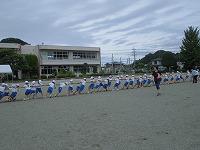 本日、8日(木)より運動会練習特別日課になり、業間を延長した時間を使って全校児童による運動会全体練習がスタートしました。