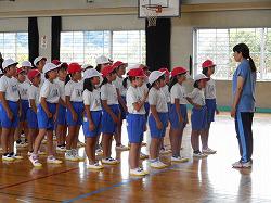 本日は雨のため、校庭で予定していた入場や開会式の練習を変更して、体育館でできる 1.運動会実行委員紹介およびあいさつ 2.基本的集団行動 3.誓いの言葉 4.ラジオ体操 5.校歌練習を行いました。