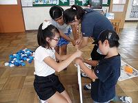 中学生達は、班のリーダーが企画の進行やデモンストレーション、時間配分なども考えながら、自分たちで全て進行しました。活動と活動の合間などにリーダーが素早く集まって、その場で判断しなければならないことを短時間に打合せをしながら、とてもスムーズに進行していたのにとても感心しました。とても落ち着いた雰囲気でいい先輩ぶりを発揮していて、小学6年生から2年間でずいぶん大人になるのだなと、この時期の子どもたちの成長に大きさに改めて気付かされました。中学生の皆さん、次回もよろしくお願いします。