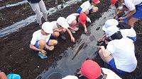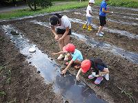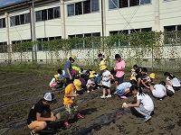 4年生は3年生をよくリードし、整列させたり声をかけたりして先輩らしい行動をとっていました。3年生も、おいしい大根ができるように願いながら、一生懸命種をまいていました。お陰で、手際よく短時間で種まきをすることができました。