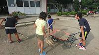 台風が過ぎ去り、やっと校庭での全校練習ができるようになりました。ライン・準備係はみんなが安全に活動できるように、石や危険物を取り除いたり、地面をならしたりしています。今朝は、応援団の朝練習も行われていました。みんなで、素敵な運動会にしていきましょう。