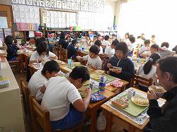 今は、お昼です。最後の海浜自然の家での食事を楽しんでいます。
