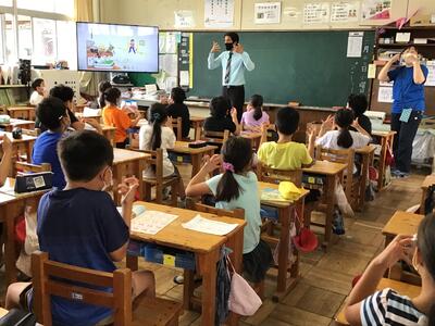 校長からは子供たちに、「早寝、早起き、朝ご飯を心がけて生活のリズムを崩さないこと」「毎日、家の手伝いをすること」「交通事故や水の事故に気をつけて、感染症予防もしっかり行って安全に過ごすこと」の3つを夏休みの宿題として出しました。