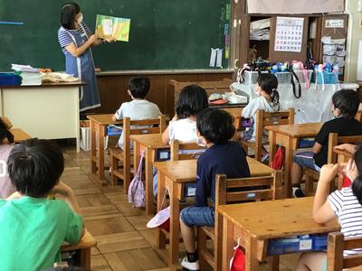 7月12日(月)、子供たちがとっても楽しみにしている、KLVの皆さんによる「お話会」がありました。今回は、1年生と4年生に対して読み聞かせをしてくださいました。