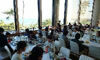 今朝も素晴らしい天気です。朝の散歩で日の出をみて、海の景色を満喫しながら朝食を食べました。今は、この後のウォークラリーにむけて、準備をしているところです。