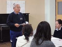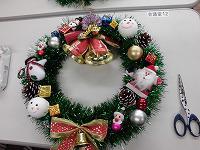 家庭教育学級最後の回は、クリスマスリース作りでした。西大芦地区にある「ポム・ド・パン」のご主人、豊田さんに、材料の準備から製作までお世話になりました。リースの本体は、豊田さんが葛を煮沸消毒して丸い輪にしてくださったものです。そのすてきな輪に準備していただいた材料で思い思いに飾り付けをしました。