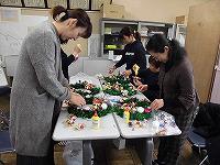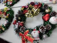 家庭教育学級最後の回は、クリスマスリース作りでした。西大芦地区にある「ポム・ド・パン」のご主人、豊田さんに、材料の準備から製作までお世話になりました。リースの本体は、豊田さんが葛を煮沸消毒して丸い輪にしてくださったものです。そのすてきな輪に準備していただいた材料で思い思いに飾り付けをしました。