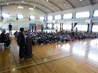 終業式では、代表児童が2学期をふり返りました。今回の担当は、2年生と6年生です。まず、2年生児童が、自分ががんばったこと、友達のことなどを話しました。長い作文を堂々発表する姿に大きな成長を感じました。6年生児童は、2学期にあった出来事をしっかりとふり返り、自分の成長について話しました。原稿を持つこともなく、自分の言葉で話す姿は、さすが6年生でした。