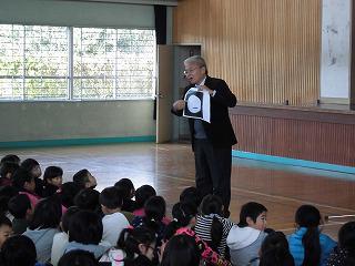 校長先生からは、「流行語」や「今年の漢字」の話題に関連し、子どもたちに「今年の漢字、言葉」の話題がふられましたが、、「思」や「元気の元」などの言葉が飛び、それぞれにこの1年間をふり返りました。校長先生自身は、「感謝」が自分の気持ちを表す言葉だそうです。「自分たちが毎日、元気に生活しているのは、周りにいるたくさんの人たちが支えてくれているおかげです。今日は、帰ったら家族に、ありがとう伝えましょう。」とのお話がありました。