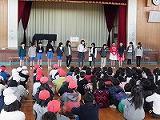 ⑬全校生で見ました。「おもしろかった。すてきな劇だった。」との感想をいただきました。