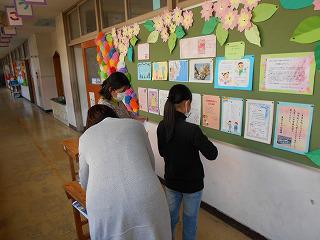 とうとう卒業式の日がやってきました。学校の中は、各学年の子どもたちが作った卒業に向けての飾り付けでいっぱいです。それぞれが工夫を凝らした素敵なものばかりで卒業ムードいっぱいです。