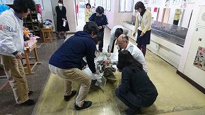 本日、現職教育で「嘔吐物の処理の仕方」を研修しました。感染性胃腸炎にかかって嘔吐してしまった場面を想定して、どのような退所をすれば感染を防ぎ、児童の健康が守れるかを実演を通して学びました。