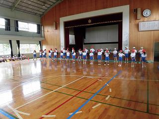 2日目は、晴天に恵まれ、校庭と体育館でそれぞれの場所に分かれ実施しました。ペア学年をさらに小グループに分け、各実施場所に移動します。元気よくあいさつをし、担当の先生から説明を受けた後、いよいよスタートです。どの子も「全力、挑戦、ありがとう」の気持ちで取り組みました。