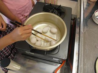 6月8日(金)、3校時目に5年生で「ゆで卵つくり」の調理実習を行いました。食品をゆでると、固くなったりやわらかくなったりして、食感が変わります。