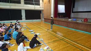 始めに代表児童の素晴らしいあいさつがあり、その後「ゆるキャラシルエットクイズ」が行われました。県内の有名なゆるキャラをシルエットでうつし、キャラクターの名前を答えました。可愛いキャラクターが一杯で、下級生を中心に盛り上がっていました。