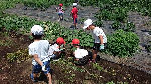 その後、6校時は6年生が農園の収穫を行いました。暑くなってきたので、作物がどんどん育っています。うれしそうにお家に持ち帰りました。これから、まだまだ収穫できそうです。