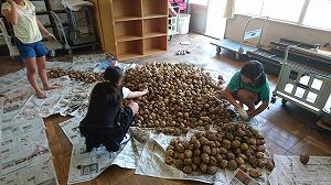 その後、6年生の児童でジャガイモを「大、中、小」に分別しました。このジャガイモは、来週全校生に配る予定です。楽しみにしていて下さい。
