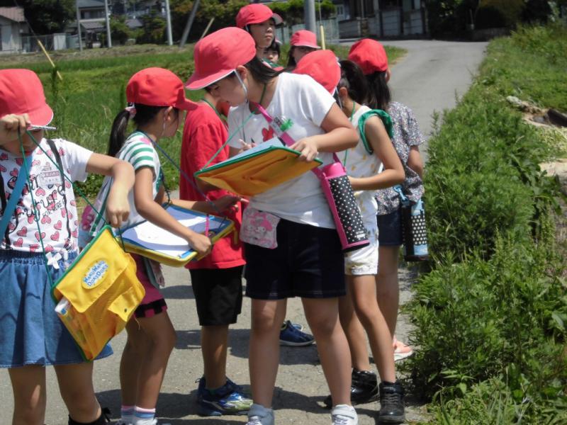 お天気に恵まれた今日,社会科「学校のまわりはどんなようす」で西小のまわりを探検してきました。北コース・東コース・南コースの3つのコースに分かれて,土地の様子を見てきました。子どもたちは「田んぼがいっぱいだね。」「川に魚がいるよ。」と自分の地域のことをよく見るいい機会になりました。