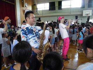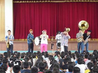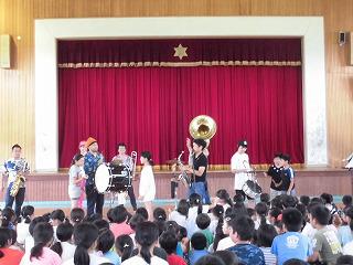 本日の2校時目に、ブラックボトムブラスバンドの皆様が来校し、本校児童と保護者の皆様を対象に演奏会を行いました。