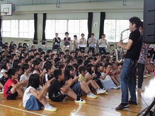 学校を出るときと子ども達の業間が重なり、多数の子ども達が別れを惜しみながら見送りました。心に響く素晴らしい体験となりました。心を解放し、心と全身で音楽を感じ取り、きっと子ども達の大切な思い出の1ページになったと思います。