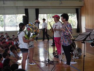 最後に代表児童とPTA文化部長からお礼の言葉を述べ、花束を贈呈しました。