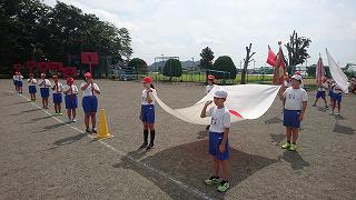 全校生での練習も2日目となりました。今日の業間は、閉会式とラジオ体操の練習が行われました。実行委員を中心として、児童主体の練習が行われています。