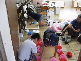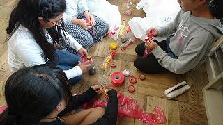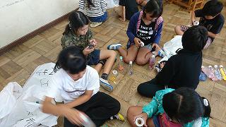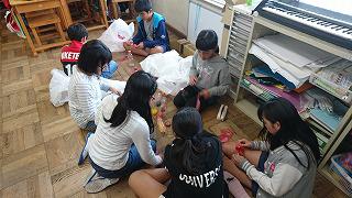 また、6年生は応援合戦で使うグッズを、全校生分作成しました。ペットボトルでマラカスを作成し、テープで飾り付けをしました。本番でも応援合戦を盛り上げると思います。