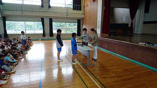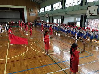 運動会も目前に控えた本日の業間に、全校集会が開かれました。運動会の練習を通してリーダーシップをさらに発揮出来るようになった6年生の進行で行われました。スポーツ少年団関係で良い結果を残した児童などが表彰されました。また、体育主任から運動会に向けてのお話もあり、全校生の士気も一気に盛り上がってきました。