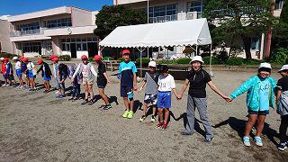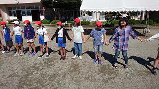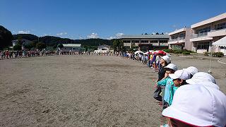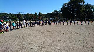 素晴らしい天気でした。全校生も運動会に向けて、気持ちが盛り上がっています。今日は、実行委員長、応援団長の提案で、全校生で手をつないで一つの輪になりました。その後、実行委員長、応援団長の「世界一の運動会にするぞ。」というかけ声に、全校生が「オー。」という声で答えました。全校生が一つになった瞬間で、とても素敵な時間でした。