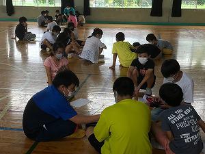 稲刈り後、わらでっぽうづくりです。15夜(10月1日)もわらでっぽうを行う地区もありますので、今日作ったものを使うことができます。用意してくださったわらとわらなわで、みどりの村の方々に教えてもらいながら丈夫なわらでっぽうになるように巻き付けました。閉会式も子どもたちの手によって行われました。充実した活動になりました。みどりの村の方々、大変ありがとうございました。