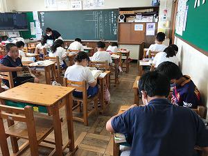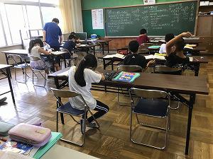 4年生は、4校時算数のコース別学習でした。学習室では加藤先生とわり算の筆算に真剣に取り組んでいました。真剣なので、小職も丸をつけながら定着の様子を確認しましたので、写真が少なくなってしまいました。よく定着していました。遅れながら教室へ移動すると、教室でも真剣さがあふれていました。頑張っていた4年生でした。