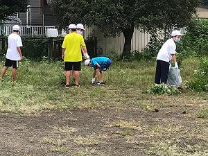 6年生は1校時に校庭の草をとってくれました。片手に軍手をはめての草むしりです。途中小雨もありましたが軍手を汚しながら頑張っていました。ありがとうございました。