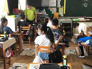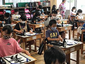 3校時は、書道ボランティアの板橋先生から「元」の書き方の留意するところを教えてもらい、真剣に書いていました。来週の清書が楽しみです。
