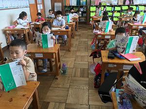 6日ぶりの学校です。1年生は、2校時国語の学習でカタカナの復習をしました。「を」は「ヲ」など、あまり使われないカタカナを含んで確認しました。