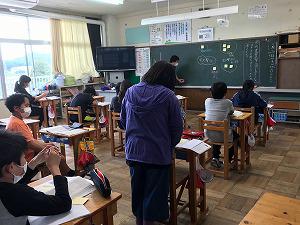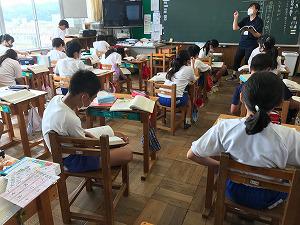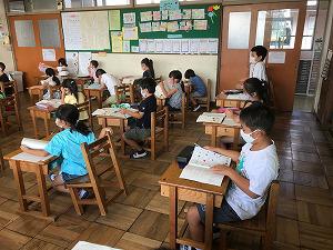 6日ぶりの学校です。5年生は、2校時国語の学習でした。「たずねびと」という単元で、広島に着いてからの「綾」の気持ちを考える学習です。